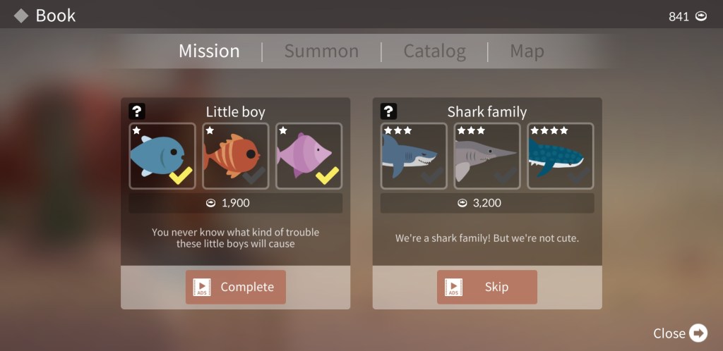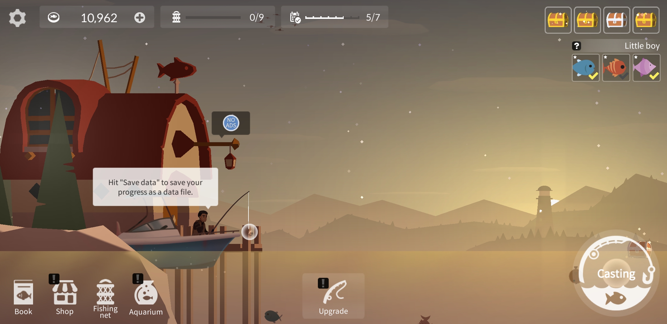 So you have to fish and sell as well as use them for bait so you can progress and catch more fish theres plenty to see in the game as theres other map locations but I’m sure the grind to catch the map boss which is what let’s you progress to the next map isnt really worth it as well as you need to constantly upgrade your fishing gear so that you can catch stronger fishes which are determined by not only the stars which show up after you catch em but as well as there level which the game tells you if they try to snag onto your hook, now when you level up your character you get bonuses to everything depending on which one your using the game also has an aquarium which you can use to earn gold by keeping fishes you may like, theres also missions which ask you to catch a certain fish group for extra gold coins as well as special fishes that appear after you catch a certain number of a specific fish giving you the chance to snag a rare fish for your tank.
