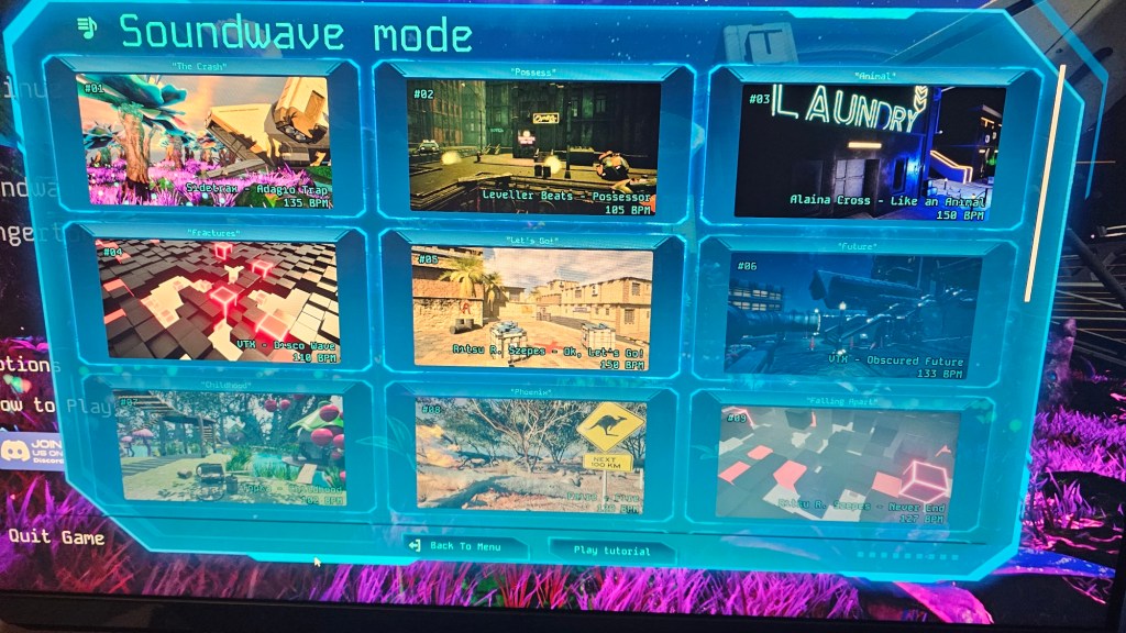 So i wasn’t sure what to expect with this game my rythem games were mostly dance dance back in the day and beat saber in VR. So I went into this with as much of an open mind as I could so my first gripe right off the bat the menu slider for audio doesn’t work and the menu music is way to loud I hope they tone it down a bit and make the slider work.